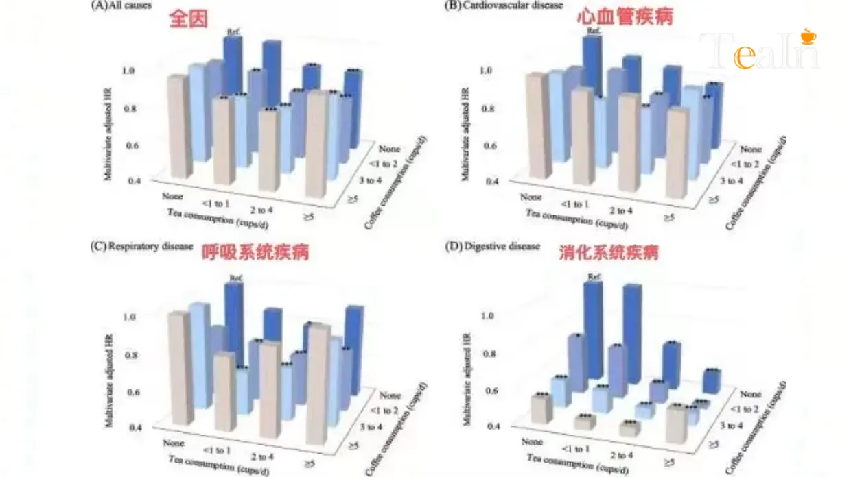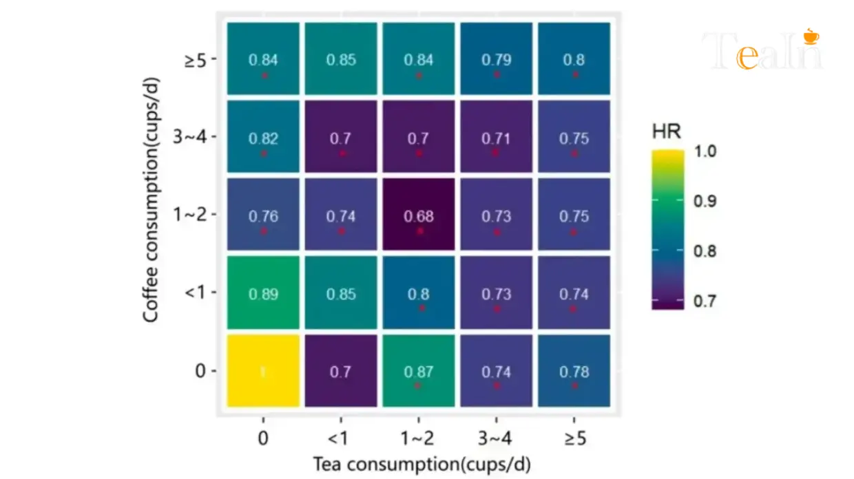 Similarly, a study by Tianjin Medical University in China involving nearly 500,000 people reached similar conclusions. Individuals who drank 2-4 cups of tea plus 1-2 cups of coffee daily experienced a 22% reduction in all-cause mortality, a 24% reduction in cardiovascular disease mortality, and a 31% reduction in respiratory disease mortality. These results outperform those of drinking tea or coffee alone, and are far better than consuming neither.
